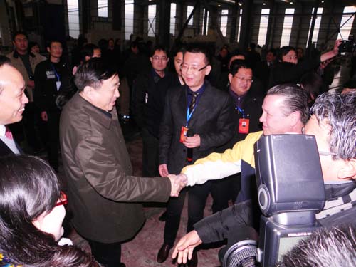 2011年02月16日下午,河南省副省長張大衛(wèi)一行來到世必愛公司視察,世必愛公司董事長王迪向省、市領(lǐng)導(dǎo)詳細(xì)介紹了世必愛的現(xiàn)狀和發(fā)展前景,張大衛(wèi)省長一行詳細(xì)查看了世必愛最新開發(fā)的串列軸承、高精密轉(zhuǎn)臺軸承、回轉(zhuǎn)驅(qū)動副等專利產(chǎn)品,并詢問了其用途和市場前景,王迪董事長一一做了匯報;在張大衛(wèi)一行來公司視察時恰遇美國與墨西哥客戶來我公司考察,副省長張大衛(wèi)與客戶握手并親切交談。