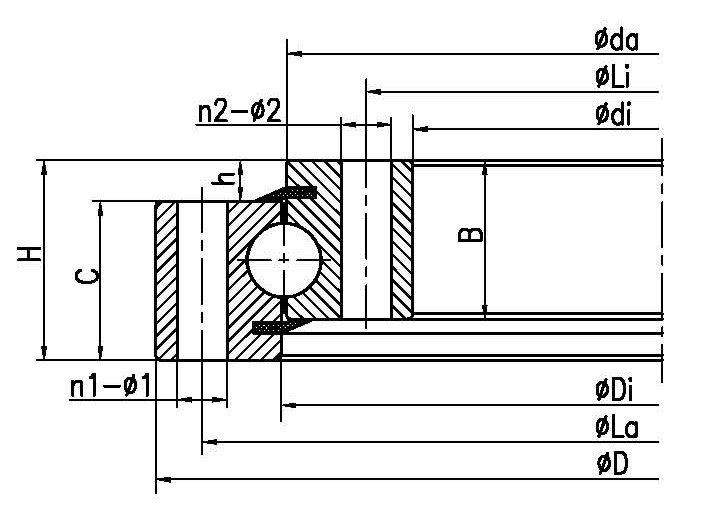 INA 型號(hào)Rothe Erde 型號(hào)LYC 型號(hào)TG 型號(hào)外形尺寸(mm)安裝尺寸(mm)結(jié)構(gòu)尺寸(mm)齒參數(shù)(mm)額定軸向靜負(fù)荷(KN)重量(KG)