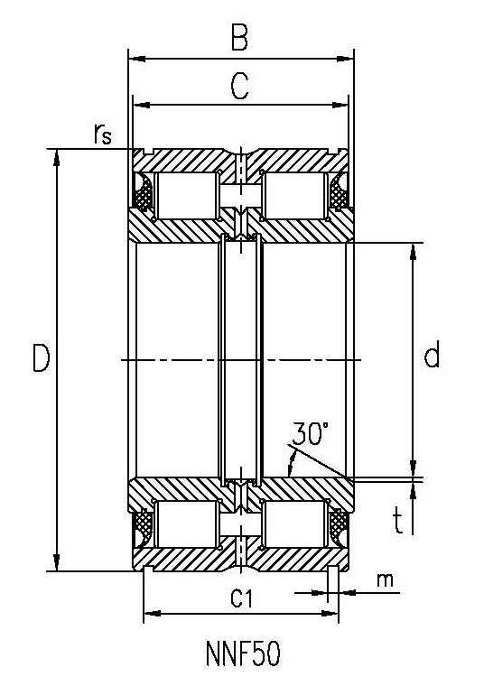 | INA 型號(hào) | 外形尺寸(mm) | 基本負(fù)荷(KN) | 安裝尺寸(mm) | 極限轉(zhuǎn)速(r/min) | 重量(KG) | | d | D | c | B | C1 | D1 | m | t | rsmin | 動(dòng) | 靜 | Ca1 | 止動(dòng)環(huán) |
