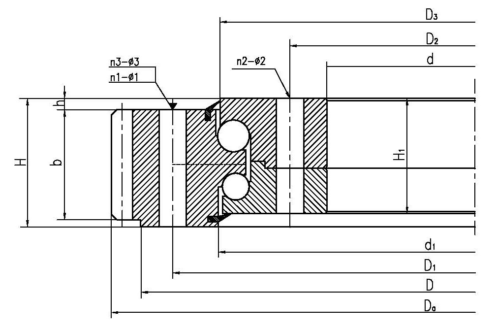 | LYC 型號(hào) | TG 型號(hào) | 外形尺寸(mm) | 安裝尺寸(mm) | 結(jié)構(gòu)尺寸(mm) | 齒參數(shù)(mm) | 額定軸向靜負(fù)荷(KN) | 重量(KG) | | Da | D | di | H | La | Li | n1 | n2 | φ1 | φ2 | D1 | d | b | h | B | C | Di | da | m | z | do | x |