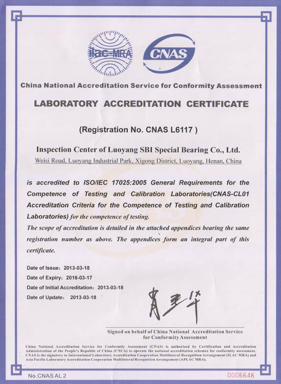 世必愛檢測中心經(jīng)國家標(biāo)準(zhǔn)實驗室認(rèn)證(CNAS),確保世必愛每套軸承都經(jīng)過嚴(yán)格檢測,完全符合國際和國內(nèi)標(biāo)準(zhǔn)要求。從原材料到成品,軸承經(jīng)過了100多套程序,每套程序都具有可追溯性。